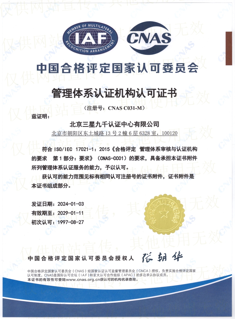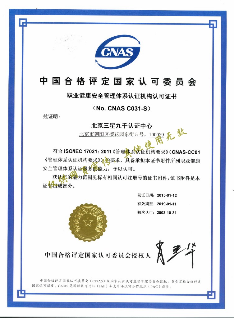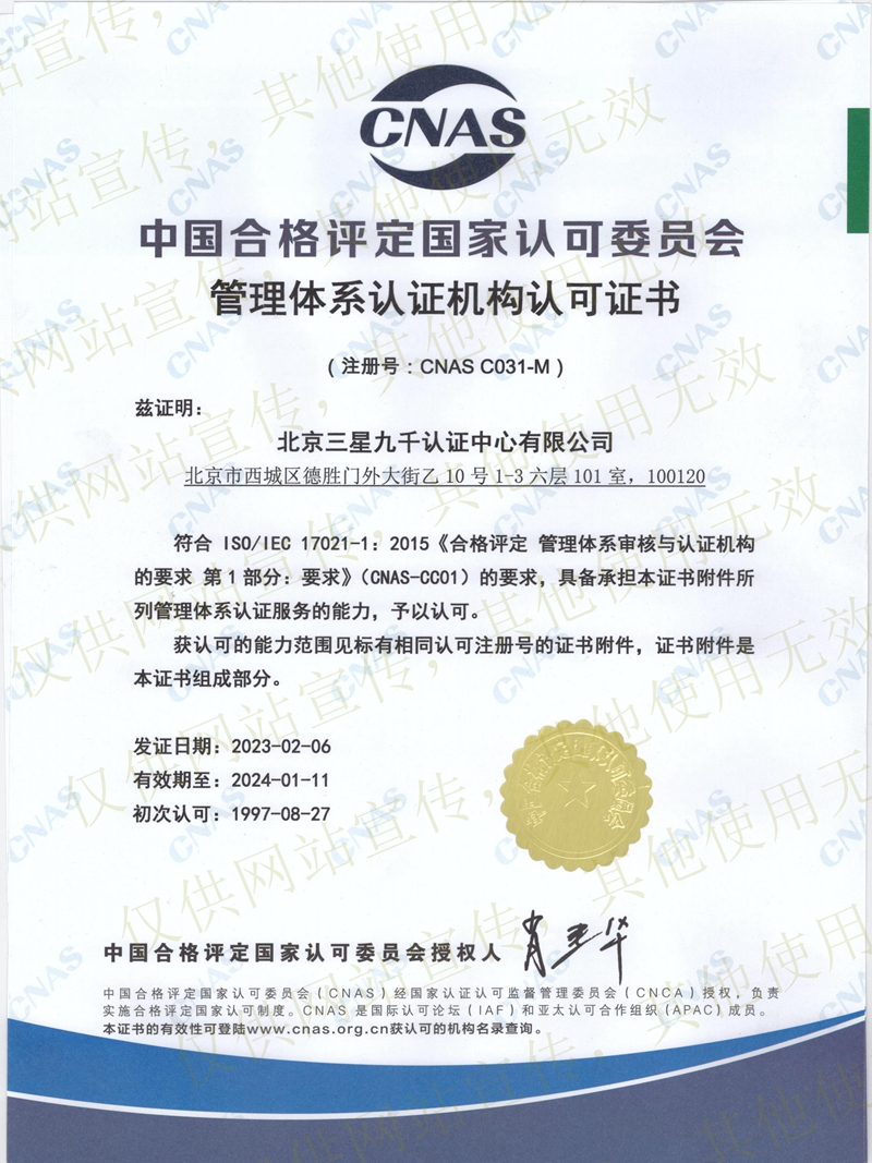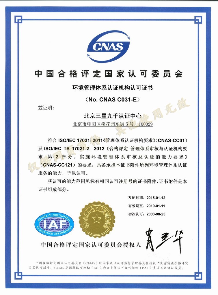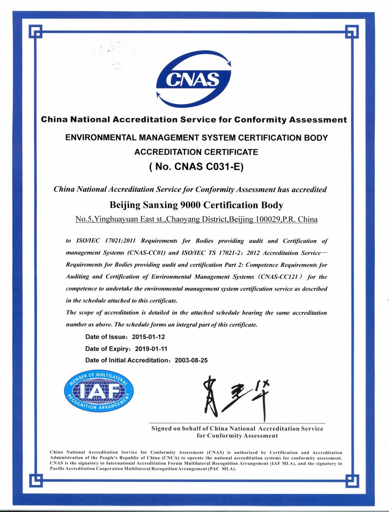 管理體系認(rèn)證機(jī)構(gòu)認(rèn)可證書 |
