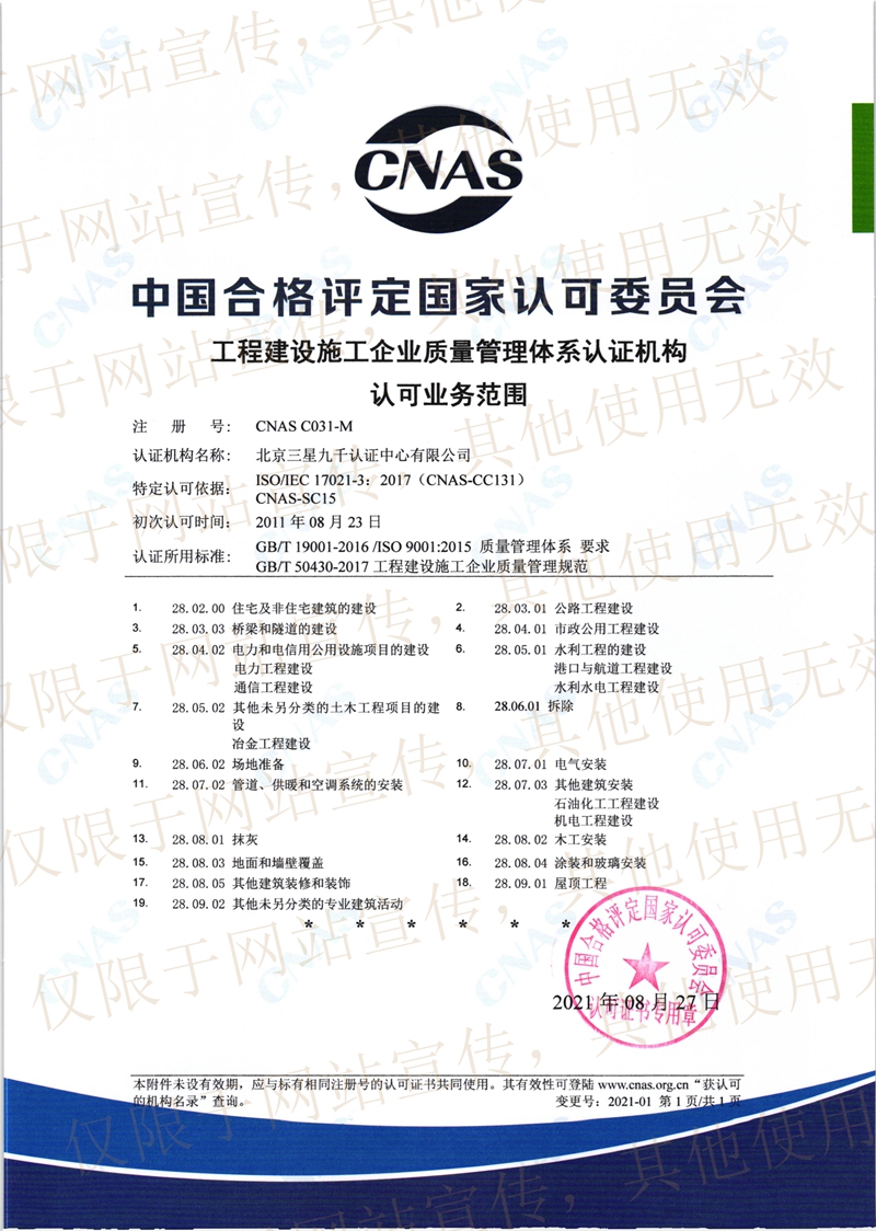 能源體系認(rèn)可業(yè)務(wù)范圍 工程建設(shè)施工認(rèn)可業(yè)務(wù)范圍 |