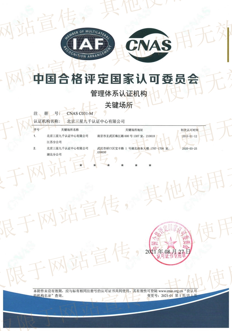 管理體系認(rèn)證機(jī)構(gòu) 關(guān)鍵場所 |