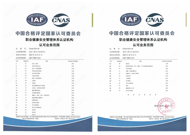 職業(yè)健康安全管理體系認(rèn)證機(jī)構(gòu)認(rèn)可業(yè)務(wù)范圍 |